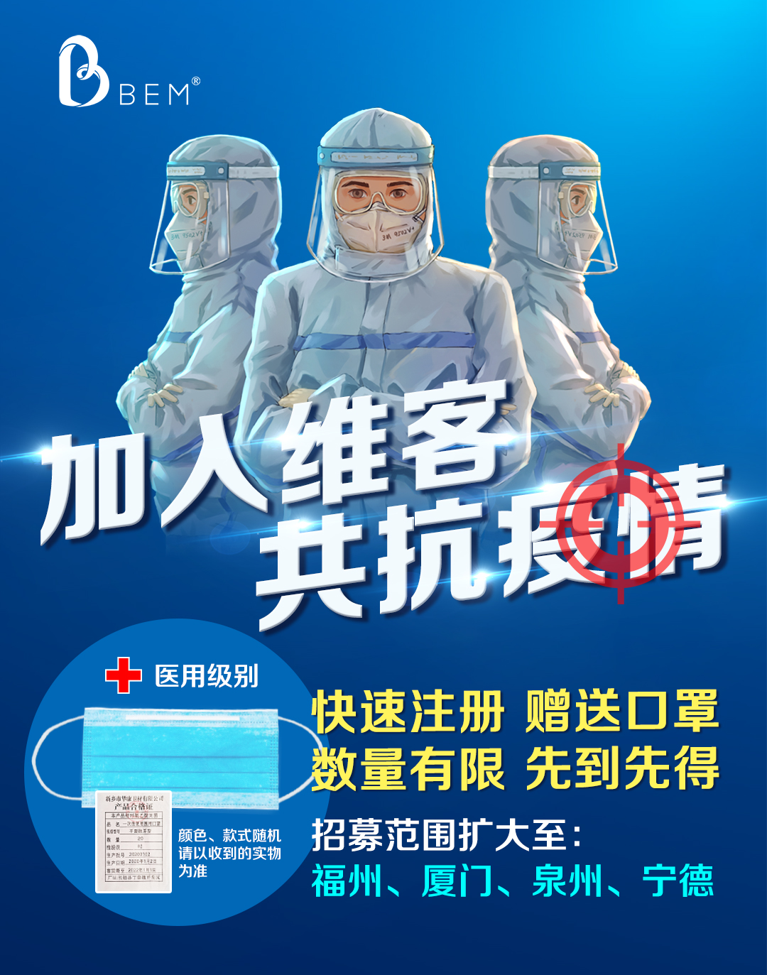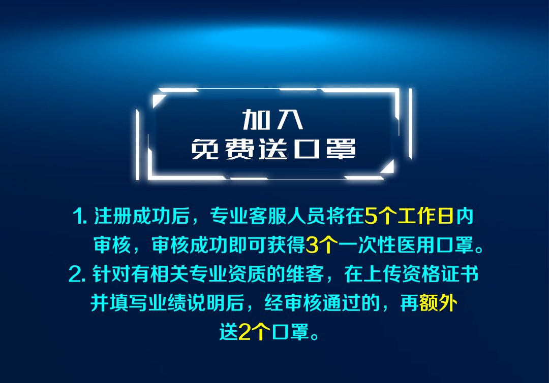 针对有相关专业资质的运维技术人员,在上传国家认证的相关资格证书并填写业绩说明后,经审核通过的,在原有赠送口罩的基础上再额外送2个口罩。